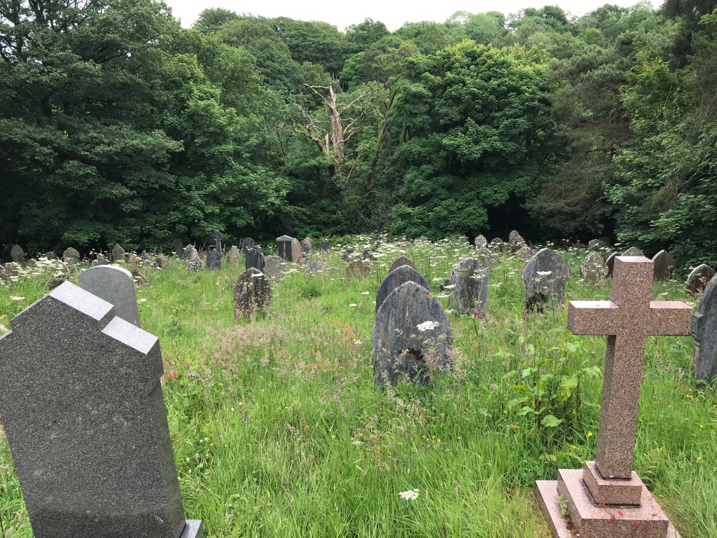 My journey to Taxal was cheerful enough, enjoying a short bus ride from the town of Buxton to the village of Fernilee, then walking for about a mile along picturesque if somewhat overgrown trails. The sun had risen to its zenith and I emerged from the trees, blinking in the light, my heart beating with both exertion and anticipation. I had been told that Saint James’ Church in Taxal was a spooky place and much to my amazement, I had marched straight out of the wilderness and into its churchyard without seeing anything else of the village first. I had suddenly reached my destination.